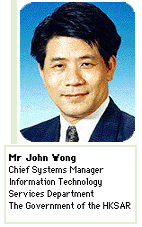 Mr John Wong Chief Systems Manager Information Technology Services Department The Government of the Hong Kong Special Administrative Region Mr John S C Wong is Chief Systems Manager of Information Technology Services Department, Government of the Hong Kong Special Administrative Region. He started his career in IT in 1971. His experience covers a wide range of IT work and services delivery. He puts emphasis on the application of IT to the operation and strategic programmes of the organisation and the community services which he considers that a continuous adoption of business process redesign and proven IT is a key to success. He had been responsible for the strategy planning activities and major projects implementation of over 40 government policy bureaux/departments. Currently, he is working on service wide initiatives and programmes to promote the use of IT in government. |